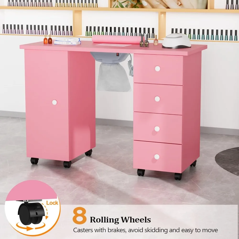 - 【MOVABLE & LOCKABLE NAIL TABLE】- The manicure table is designed with 8 rolling wheels, you can easily move it from one place to another. Besides, the wheels are lockable to enhance the stability of the table. You just press the button on the wheel and the table will stay where you want it to be.