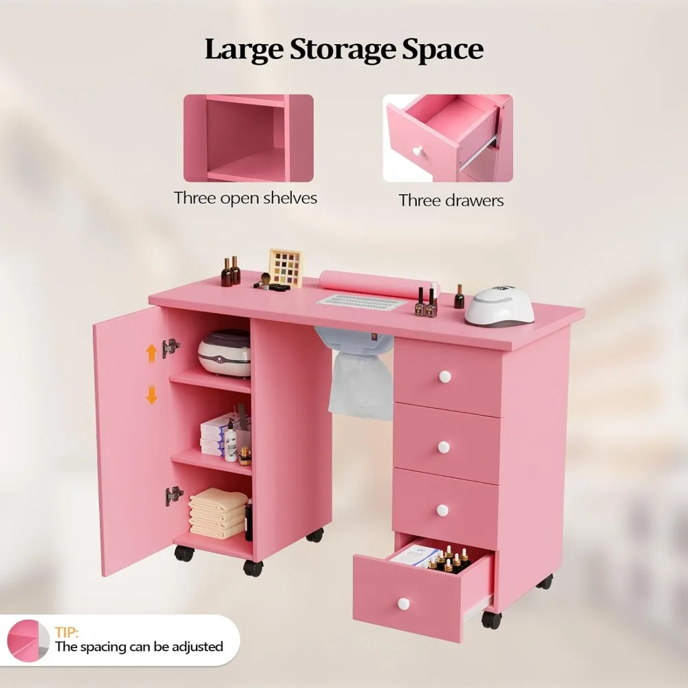 - 【LARGE STORAGE SPACE】-The professional manicure table is designed with 4 drawers and a large capacity 3 Layers Cabinet. It is spacious enough for professional manicurists to place various manicure tools.It can meet the storage requirements of various sizes without worrying about storage.